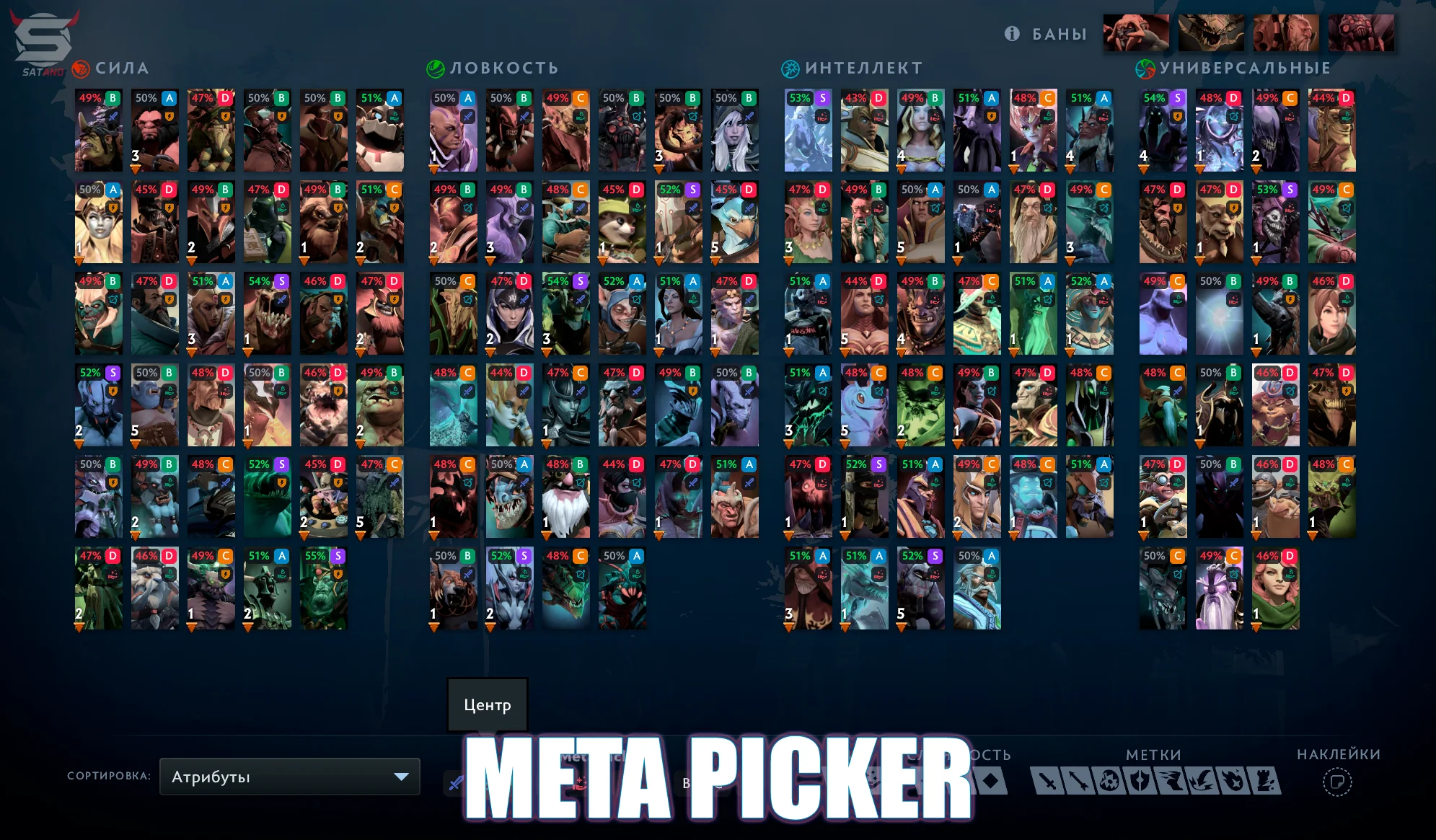 - Meta Picker - отображает информацию о текущей мете и лучших героях для пика